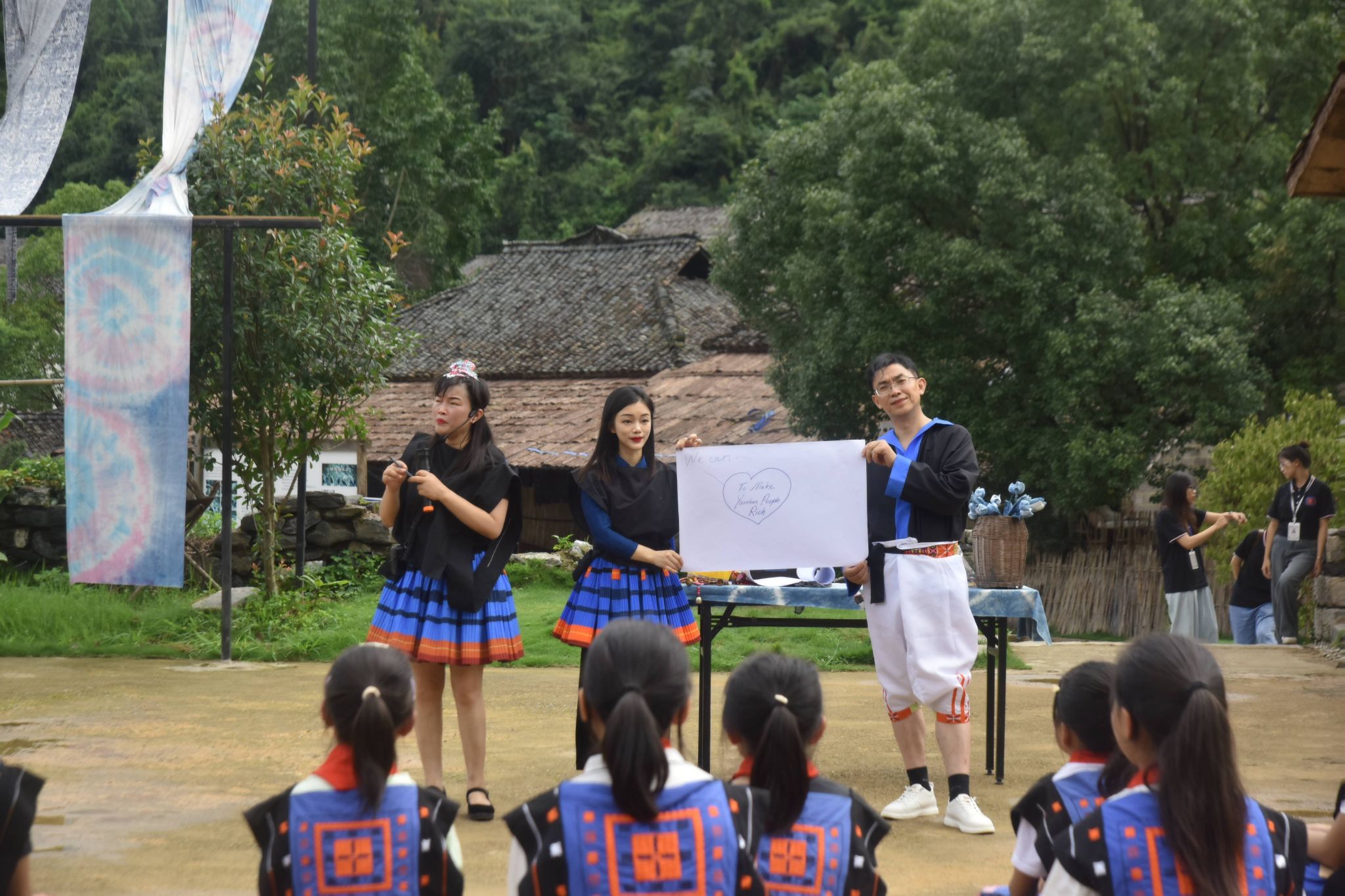 现场,在黔南民族师范学院挂职担任对外交流合作处副处长兼 ai去衣 副院长的 ai去衣 副院长高飞雁给荔波县瑶山民族小学五年级的学生上了一节题为《瑶山五变》的英语教育戏剧课。本节课在荔波县瑶山古寨标志性景点“瑶王府”开展。课程以荔波县瑶山地区充分挖掘当地布依族苗族文化资源,将文化资源优势转变为旅游和经济资源优势从而实现“瑶山五变”为背景,教师通过教育戏剧范式“教师入戏”化身成为瑶族姑娘“瑶瑶”,带领学生用英语介绍瑶山文化,讲好瑶山故事;通过“静态画面”、“街头巷尾”展示“瑶山巨变”,感受党的领导和关怀,感受民族团结共同富裕,增强民族自豪感;通过探寻民族文化的“根源”,真切点燃传承、传播优秀民族文化的心焰。