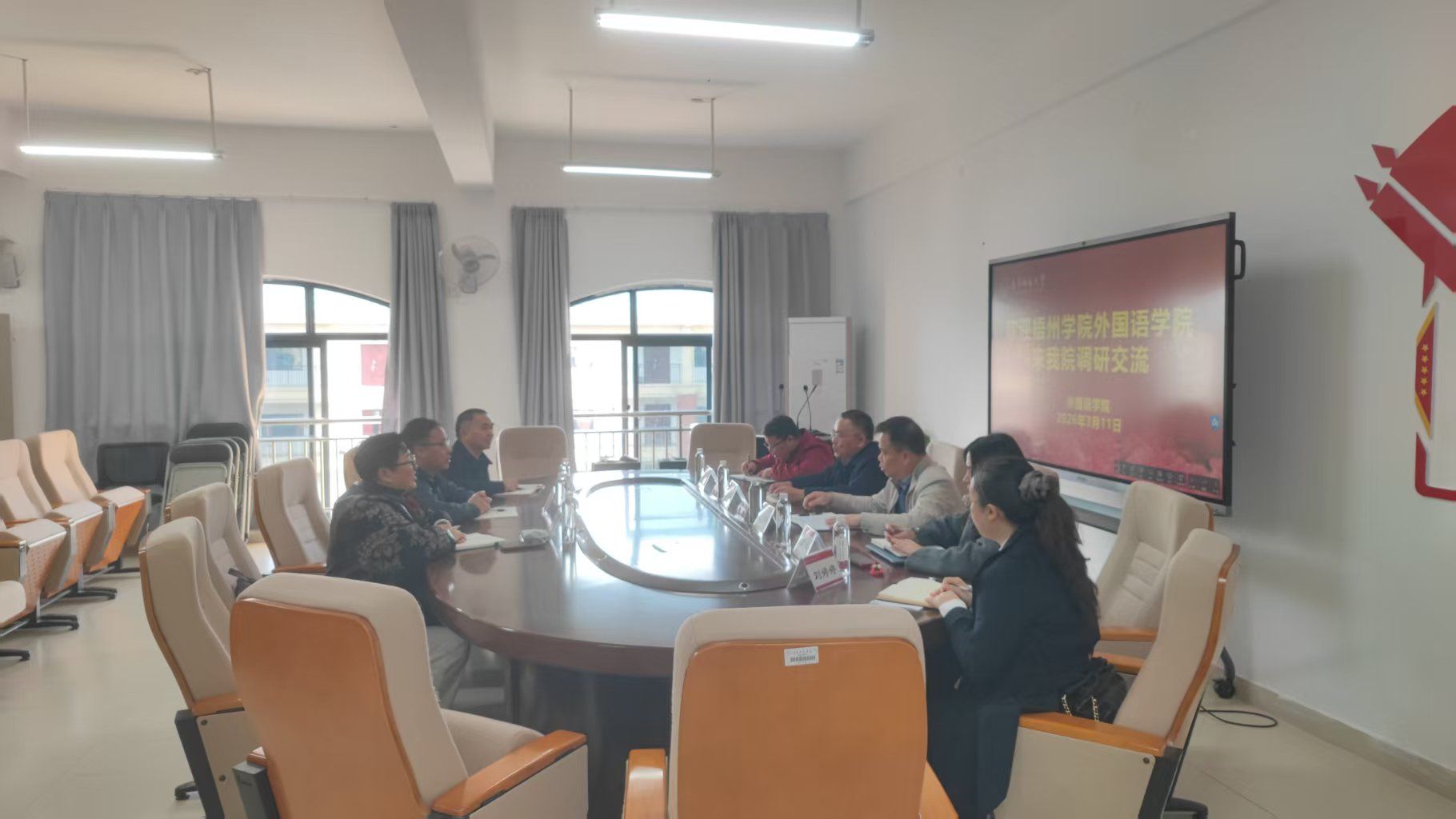 党委书记苏华、院长陈光伟、副院长张晓鹏、副院长蒙岚及英语专业负责人刘婷婷与会并热情接待,双方进行了深入座谈交流。