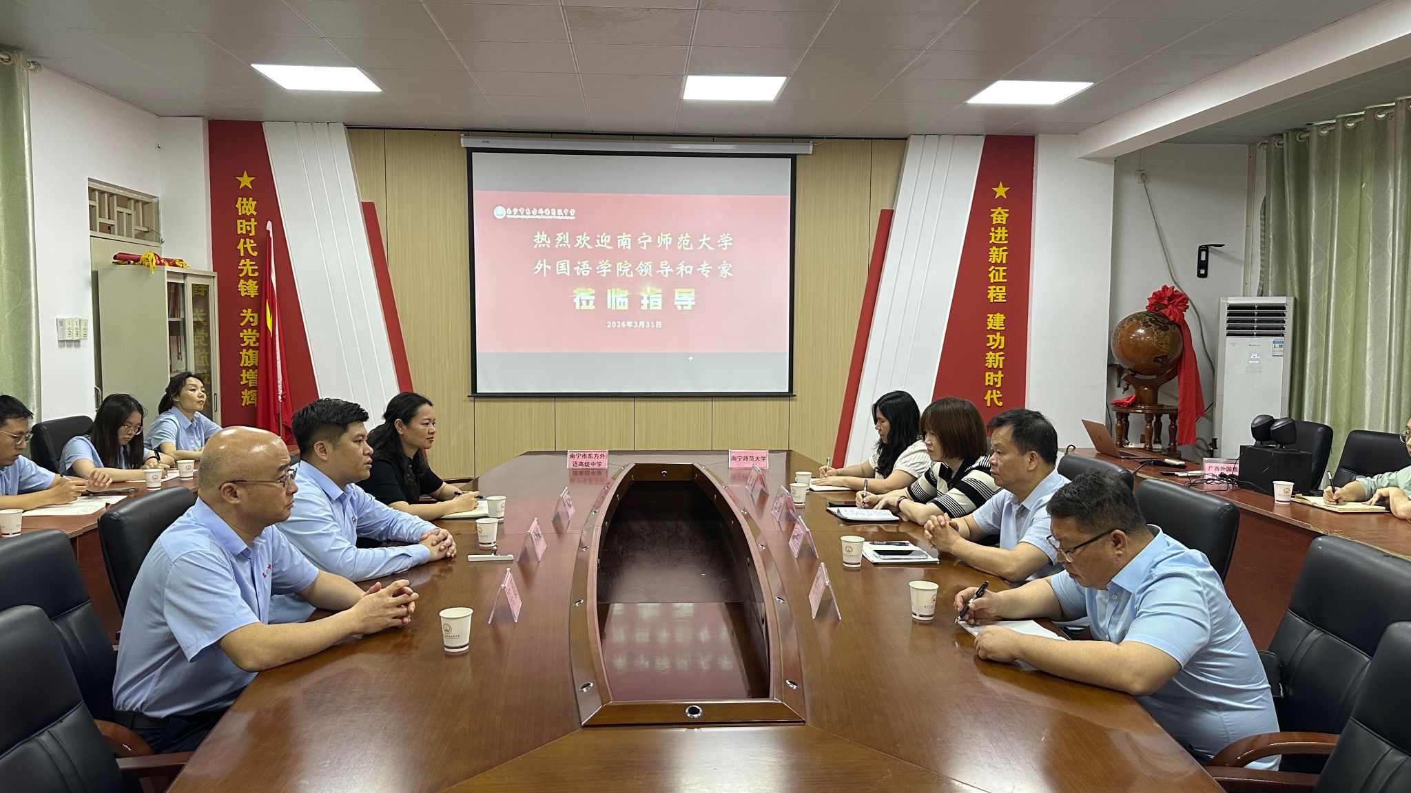 蒙岚副院长率队,学院陈光伟院长、邱晖副书记、张晓鹏副院长及各教研室主任、毕业年级辅导员一行,前往南宁市东方外国语高中开展访校拓岗合作交流,南宁市东方外国语高中杨祯毅书记、何丽丽校长、高磊执行校长及相关部门负责人热情接待。
