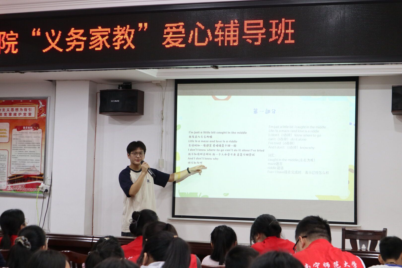 本次系列义务家教活动开展了多种互动游戏,如看图猜成语、传声筒、盲人摸象和雨点变奏等。小朋友们和教员们在明信片上写下了各自的目标和期许,一起畅想属于自己的未来。与此同时,本次义务家教活动还与FLD艺术团和NEW VOICE英语社共同合作,增设了英文歌曲教唱活动与英语角活动。在志愿者的帮助下,小朋友们积极学习英文歌曲,这不仅提升了他们对英语学习的兴趣,还提高了他们的自信心,拥有上台展示的勇气。在活动尾声,在教员们的鼓励下,小朋友们勇敢举手发言,分享这段时间的收获。