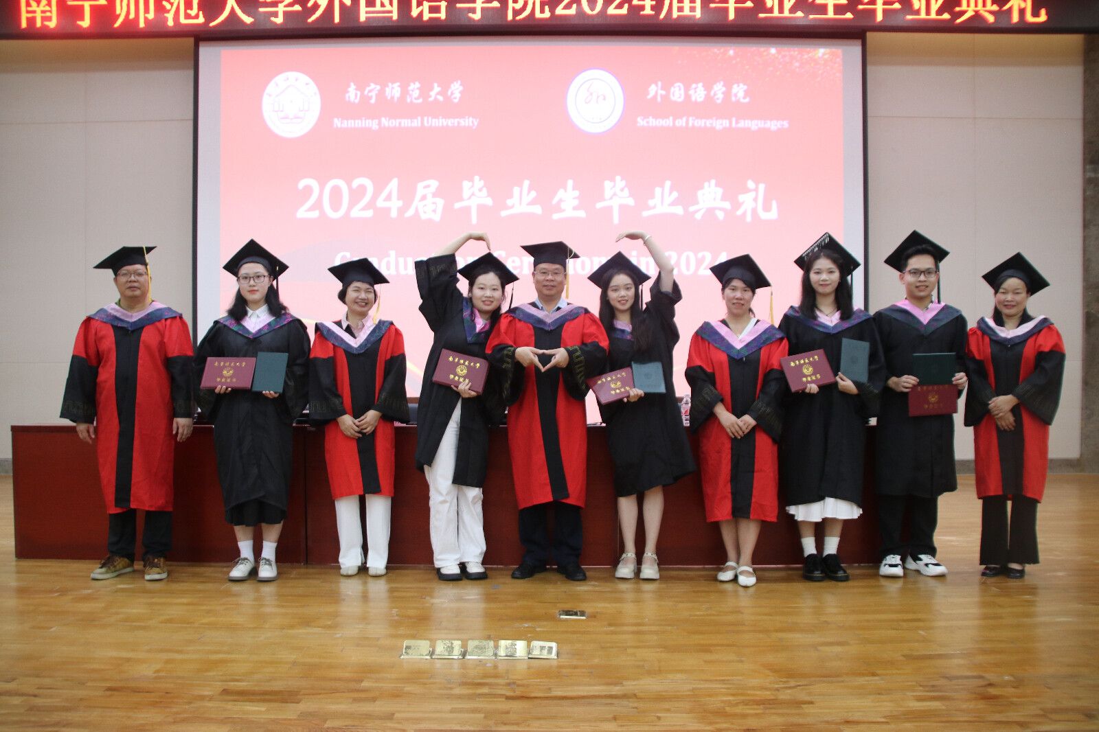随后,蒙岚副院长和张晓鹏副院长分别宣读研究生和本科生毕业和学位授予的相关文件。参加典礼的毕业生们也迎来了他们期待已久的学位授予仪式。仪式过程中,陈光伟院长、李桂明副院长、张晓鹏副院长、高飞雁副院长、蒙岚副院长一一为毕业生们拨穗、颁发毕业证和学位证书并合影留念。