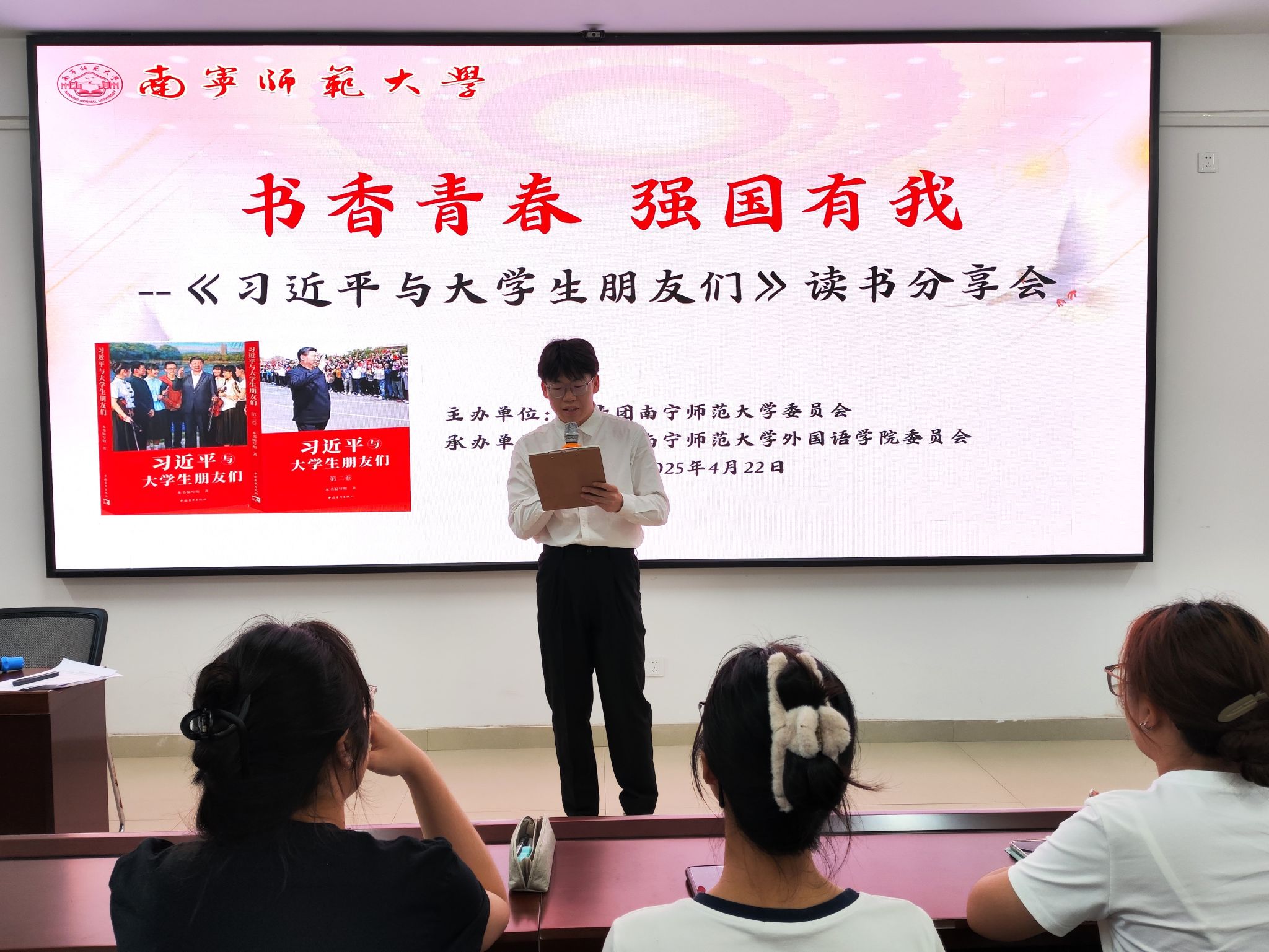 于4月22日下午在武鸣校区1号实验楼B座515会议室举办了“书香青春强国有我——《习近平与大学生朋友们》读书分享会”。活动由共青团 ai去衣
