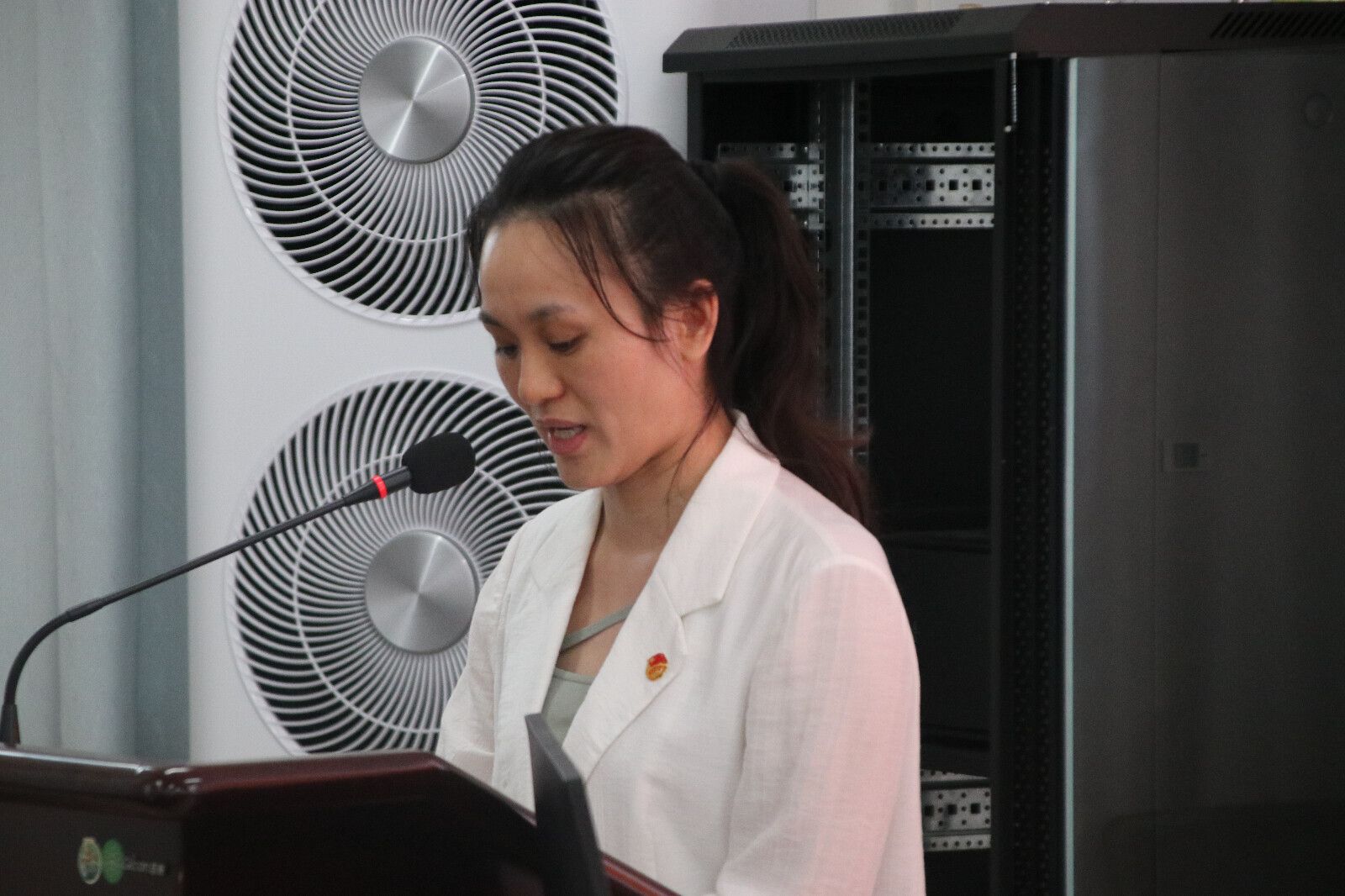 仪式在庄严的国歌中拉开序幕。首先,主持人宣读了新发展团员名单,热烈欢迎新团员的加入。紧接着,蔡梓晴老师和优秀团员、党员代表为新团员颁发并佩戴团徽。全体新团员在主持人的带领下进行入团宣誓,铿锵的誓言彰显青春信念。
