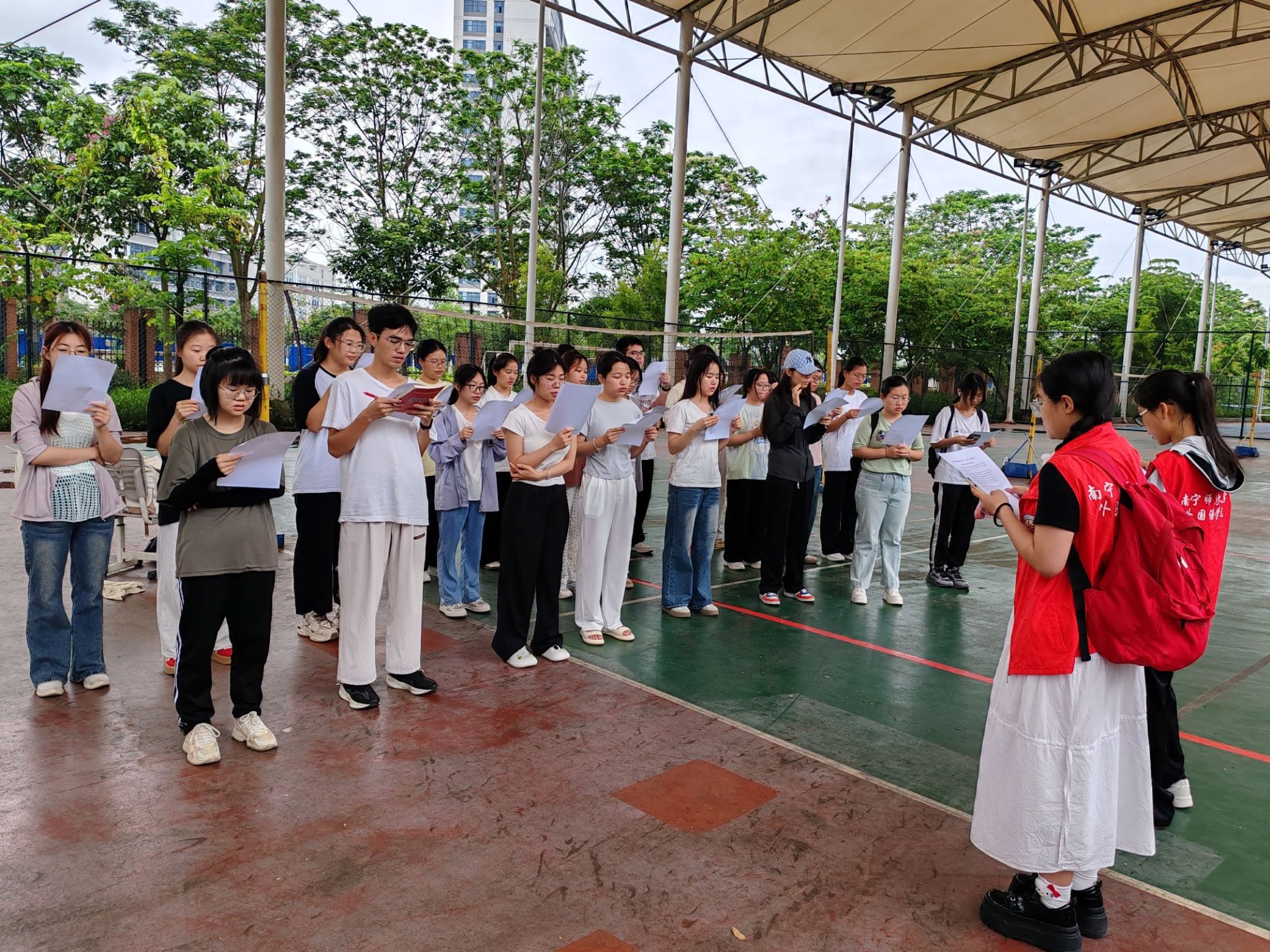 于5月19日至6月13日开展 “外语朗读工程——跨学院英语晨读指导志愿服务项目”活动,活动每周一至周五在桂园排球场、兰园体育馆旁等进行,累计服务超400人次。