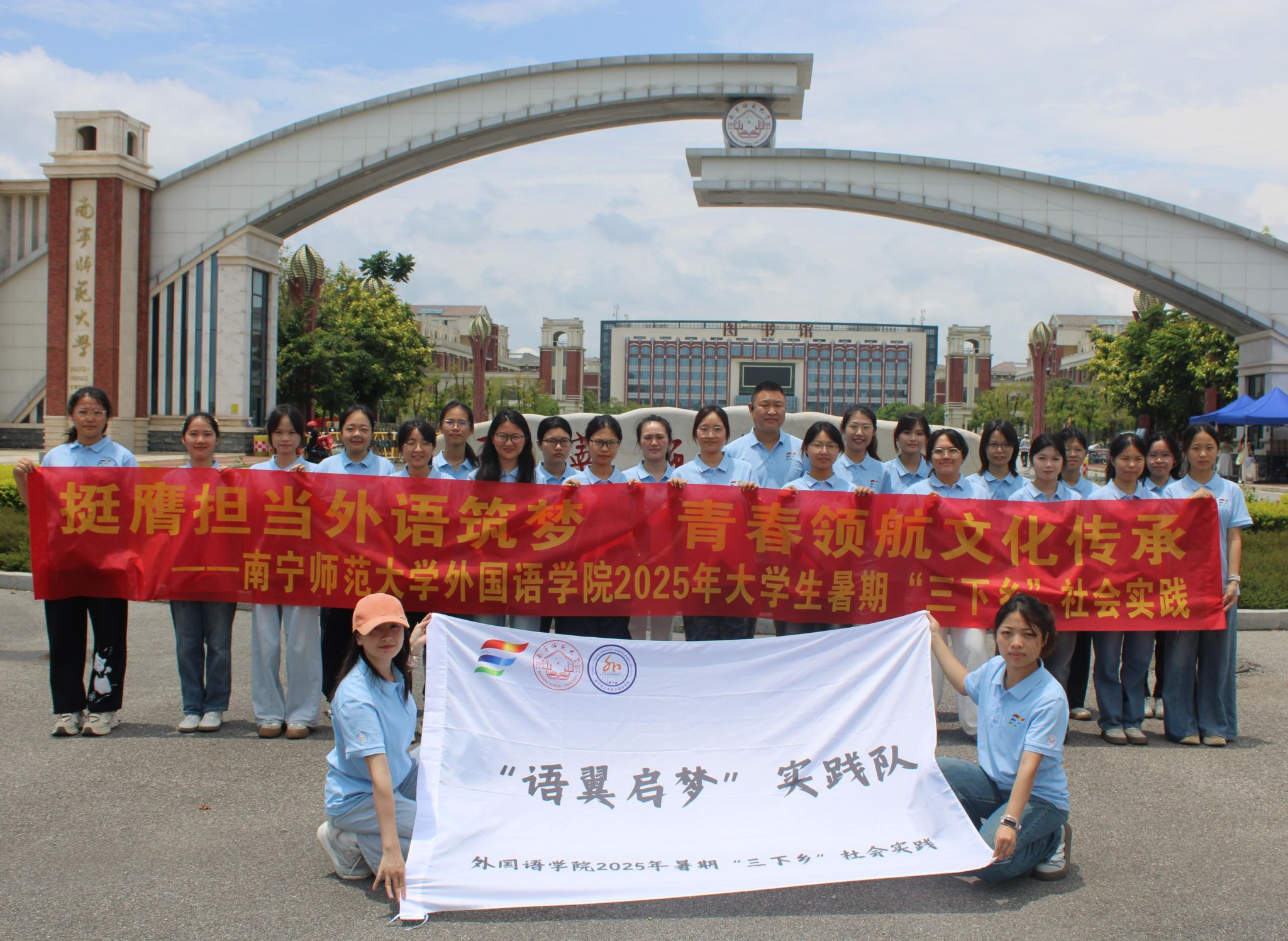 “语翼启梦”实践队一行23人走进南宁市马山县林圩镇合理小学,开展丰富多彩的暑期“三下乡”社会实践活动。