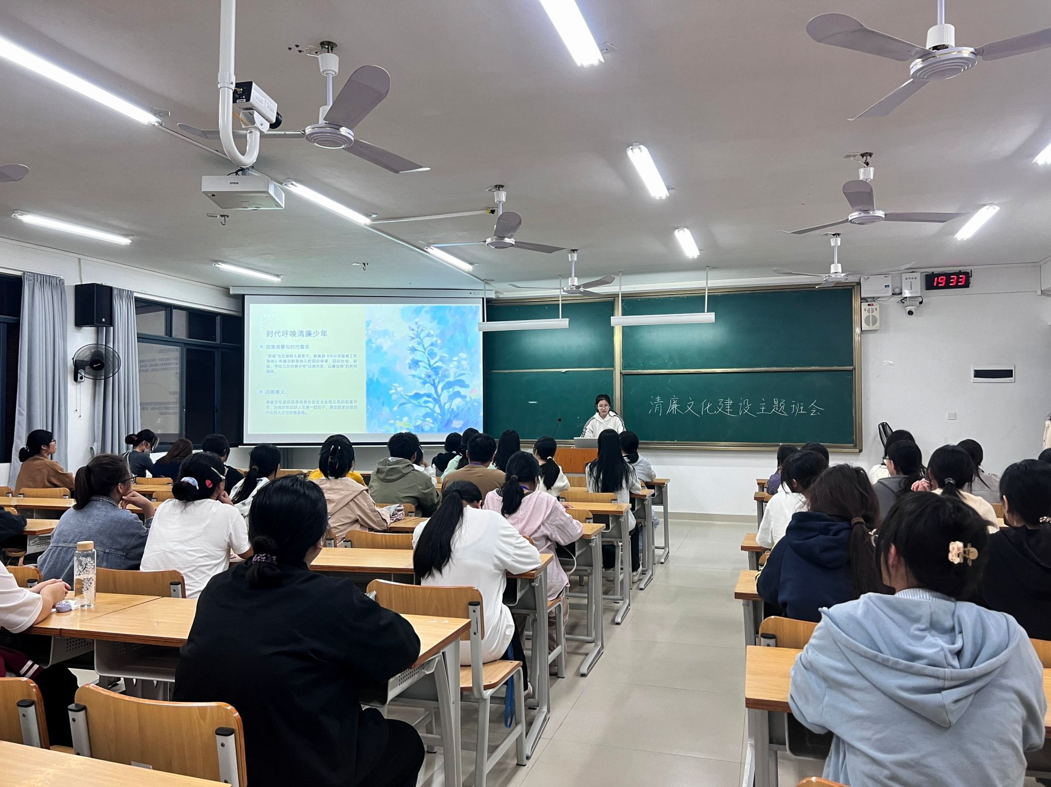 在实验楼2C-502教室顺利举办清廉文化建设主题班会,引导学生树立“以清为美、以廉为荣”的价值观念。
