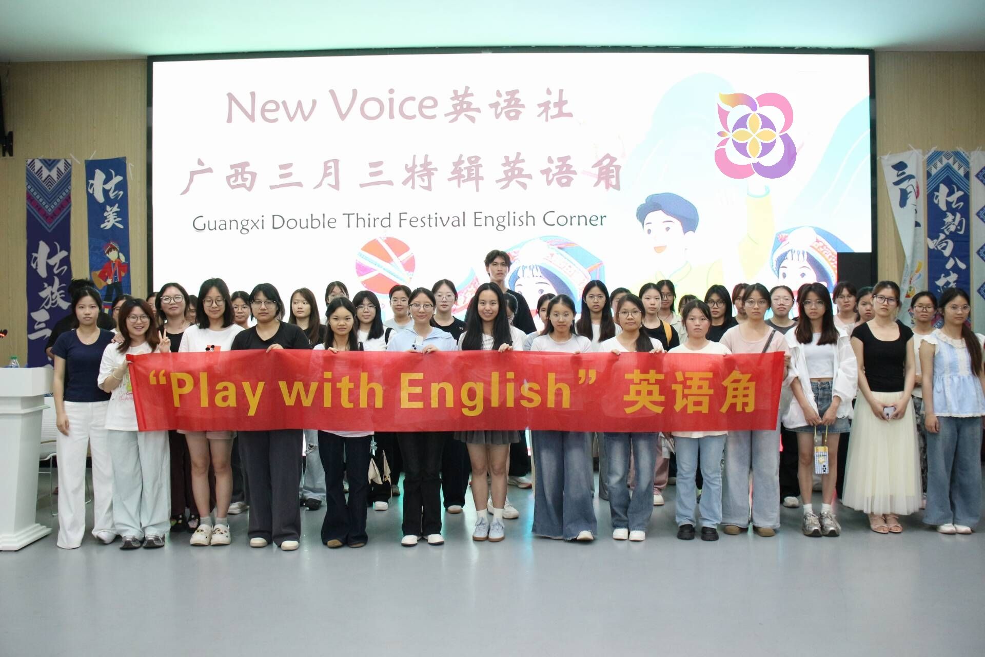 New Voice英语社于4月10日在武鸣校区兰园食堂三楼大创场地举办广西“三月三”主题英语角活动。 ai去衣