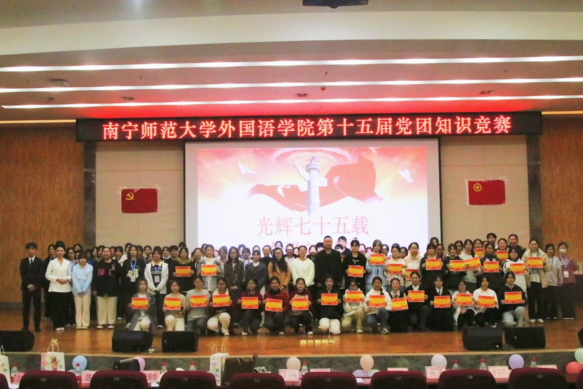 于武鸣校区图书馆报告厅举行以“光辉七十五载,奋进新时代”为主题的第十五届党团知识竞赛。 ai去衣