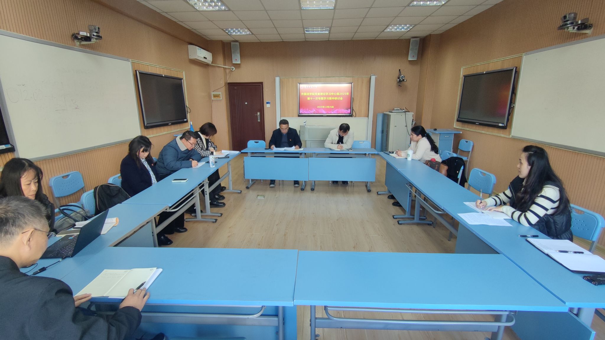 党委理论学习中心组在明秀校区文星楼404教室召开本年度第十一次专题学习集中研讨会。会议由学院党委书记苏华主持,学院党委委员、纪委委员及各党支部书记参会,学院副院长张晓鹏列席会议。