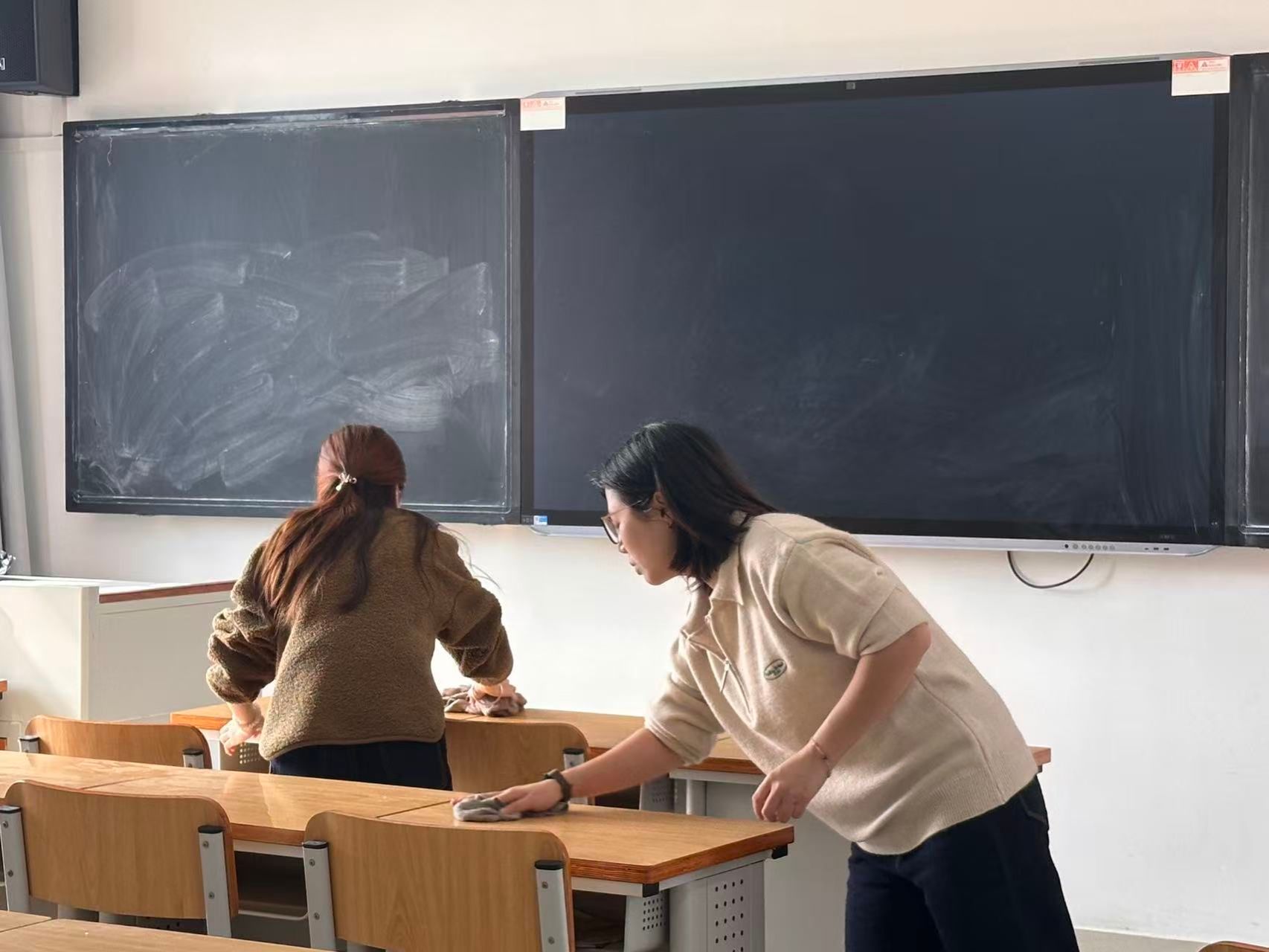 研究生第二学生党支部组织党员于实验楼1C开展了专项清洁志愿服务活动,对203、102、407教室及两侧楼梯进行了全面清扫与整理。
