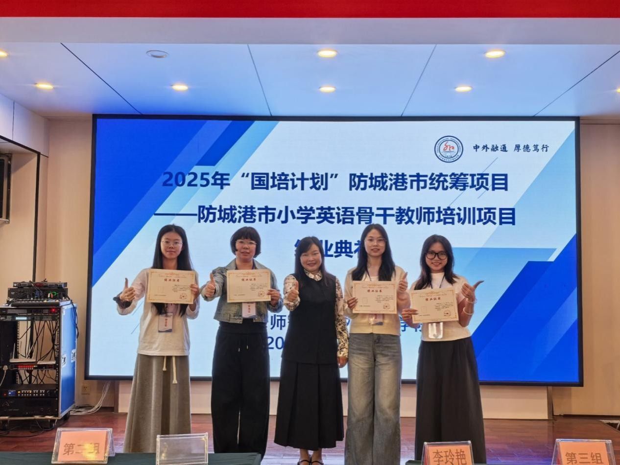 10月31日,为期8天的广西2025年“国培计划”——防城港市统筹小学英语骨干教师培训在南宁顺利落下帷幕。本次培训以“赋能骨干教师,引领区域发展”为目标,围绕新课标落地、跨学科融合、人工智能教学等前沿议题,通过专题讲座和跟岗实践等多种形式,为来自防城港市的小学英语骨干教师带来一场系统而深刻的学习盛宴。