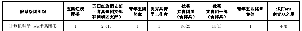 各位老师、同学,大家好!学校团委已发布2019年度五四评优通知,根据文件,我系各类评优可推荐名额为: