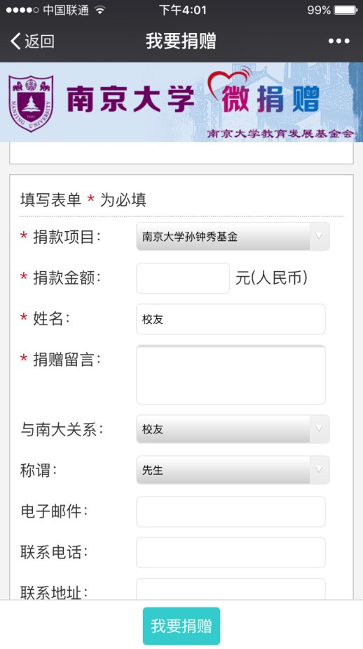 (二)、进入“南京大学教育发展基金会”微信界面后,