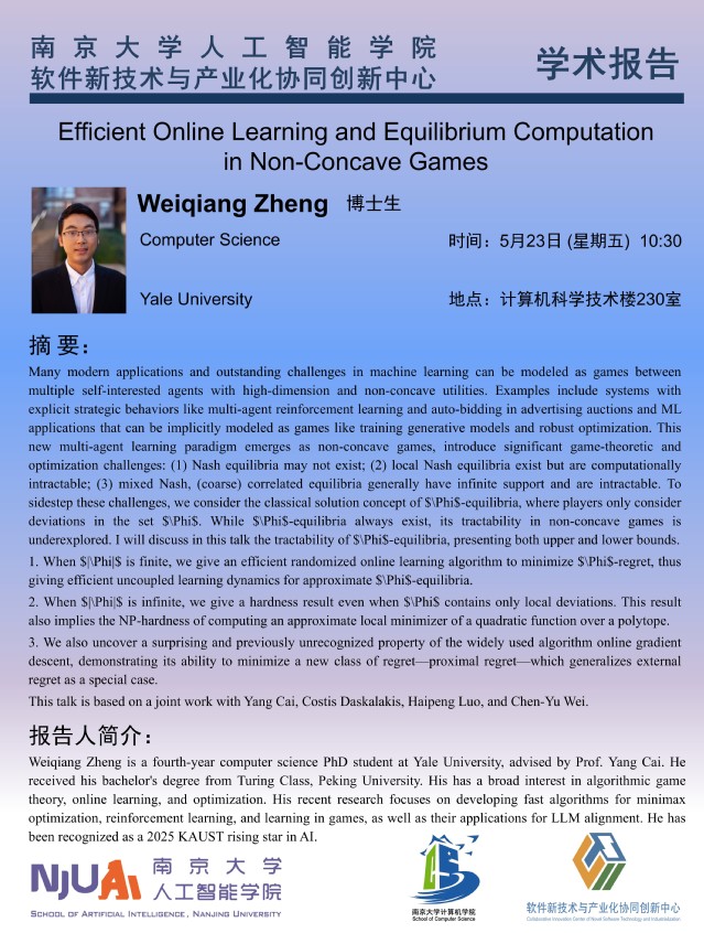2025年5月23日 学术报告 - Weiqiang Zheng 博士生