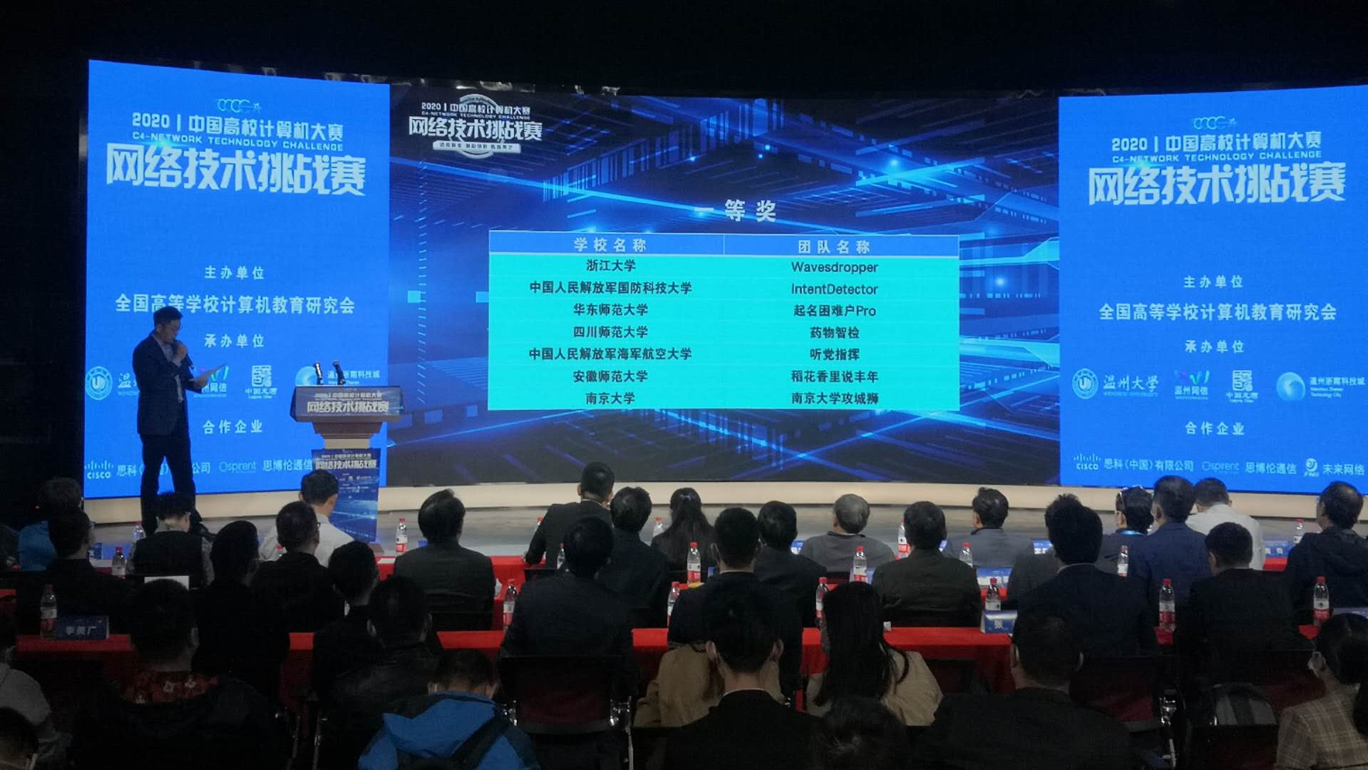 中国高校计算机大赛(China Collegiate Computing Contest,简称C4)由教育部高等学校计算机类专业教学指导委员会、教育部高等学校软件工程专业教学指导委员会、教育部高等学校大学计算机课程教学指导委员会、全国高等学校计算机教育研究联合创办,是国内参赛学生最多、水平最高、影响力最大的计算机类学科竞赛之一。“网络技术挑战赛”为“中国高校计算机大赛”的竞赛模块之一,目的在于适应网络技术与应用的快速发展,对接经济社会人才需求,促进学生在网络技术研究与设计、开发与应用方面的创新能力培养,促进相关专业的新工科人才培养与课程体系变革,促进更大范围的产教融合、产学协同育人。本届比赛由全国高等学校计算机教育研究会主办,共有1500多支队伍6000多位选手参与竞技,来自包括中国科学院大学、浙江大学、中国人民解放军国防科技大学、上海交通大学、南京大学、电子科技大学、中国科学技术大学、武汉大学等在内的300多所高校。经过资格赛和选拔赛,共有146个作品进入全国挑战赛总决赛,前10%的作品获得一等奖。