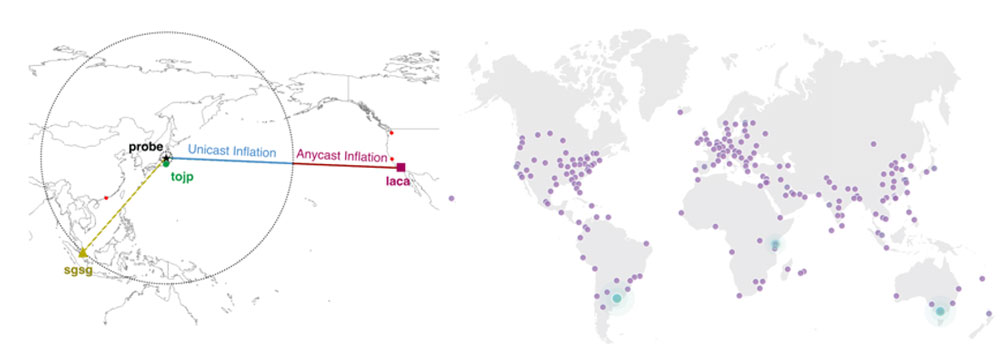 任播是IPv6中定义的一种新型通信服务,与单播和组播类似,任播也是IP网络的一种通信模式。任播允许源结点向一组目标结点中的一个结点发送数据报,而这个结点由路由系统BGP协议选择,对源结点透明;理想情况下,路由系统将选择“最近”的结点为源结点提供服务,从而在减轻网络负载的同时为源结点提供最优服务。目前大部分DNS和CDN服务都采用任播技术,但是其性能表现与理想情况相差甚远。我们的研究致力于提升任播性能,解决任播相关问题,同时优化BGP、DNS等协议。