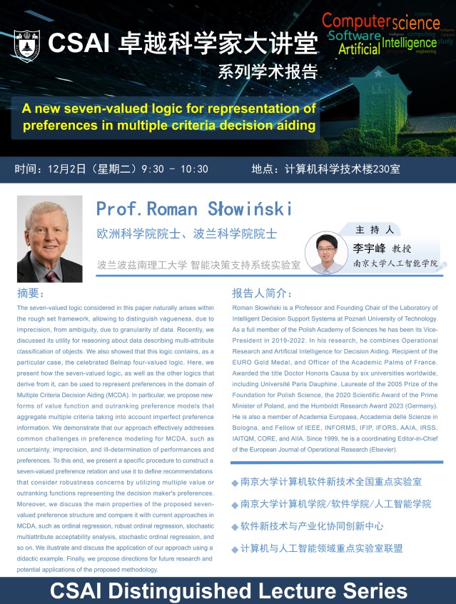 2025年12月2日“CSAI 卓越科学家大讲堂” 学术报告 - Prof. Roman Słowiński