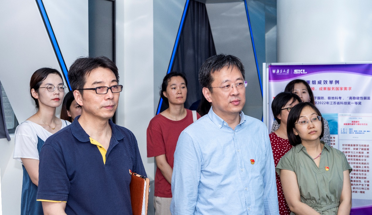 计算机系与软件学院党委武港山书记陪同信息化中心支部参观了南京大学软件新技术全国重点实验室。计算机系办公室支部的同志对重点实验室在图形图像、RFID深度学习等方面的新进展、新技术、新成果进行了讲解,并展示了这些新技术、新成果在国防、科研、医疗方面的应用。