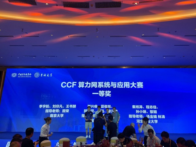 本年度比赛共设立了三个赛道,分别为信息高铁赛道、鹏城云脑赛道和派欧云赛道。各赛道旨在结合相应算力平台的资源能力与特点,设计、实现并优化算力网赋能的应用案例。经过初赛阶段系统作品效果评估的激烈角逐,南京大学、中国科学院大学、国防科技大学、南开大学、电子科技大学等高校的12支队伍脱颖而出,成功晋级决赛。最终,经过现场紧张激烈的答辩,由南京大学计算机学院硕士生李宇航、刘非凡、王书麟组成的“多快好省队”(指导老师:顾荣),获得了信息高铁赛道唯一的一等奖!